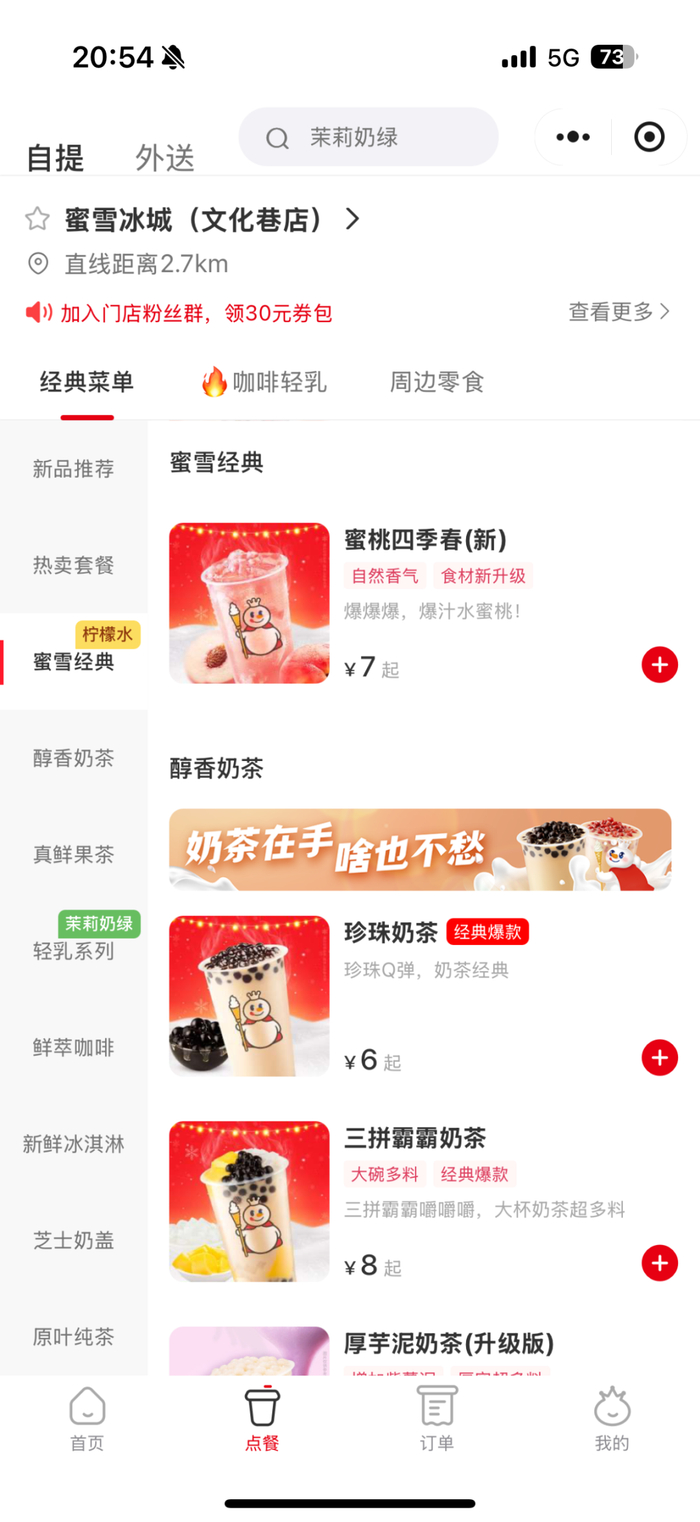 本店堂食、小程序APP饮品