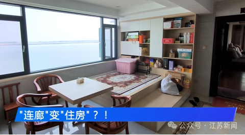 金湖县居民反映,当地闸东小区的多栋业主将连廊占为已用,甚至安装上大门圈成自己的领地,造成较大安全隐患。