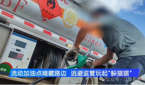 淮安市多个辖区存在流动加油点问题,加油点大多非常隐蔽,加油车机动性强,碰到联合检查就一躲了之。记者走访调查时发现:淮安区淮安电子商务现代化物流园靠近经十四路绿化带旁有加油车,淮安经开区岳阳街西侧有可出售柴油的油罐车,加油枪、计价器;淮阴区205国道附近的一家物流公司院内有一处流动加油点。