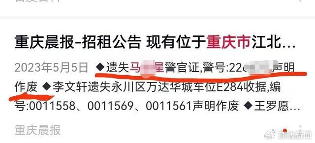 马某星曾遗失过警官证,报纸上刊登的遗失作废信息。