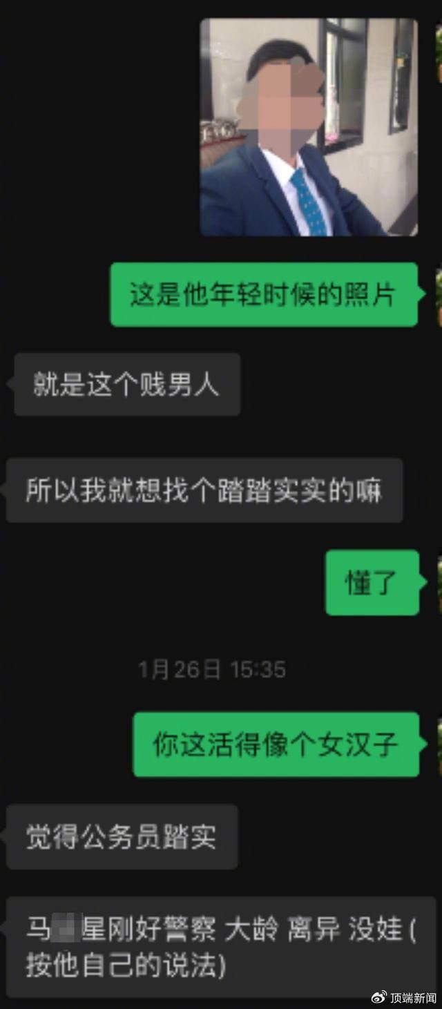 此前,有网友通过社交平台发布视频,实名举报马某星身为公职人员,却存在严重作风问题,以“相亲”名义骗取多名女性的信任。