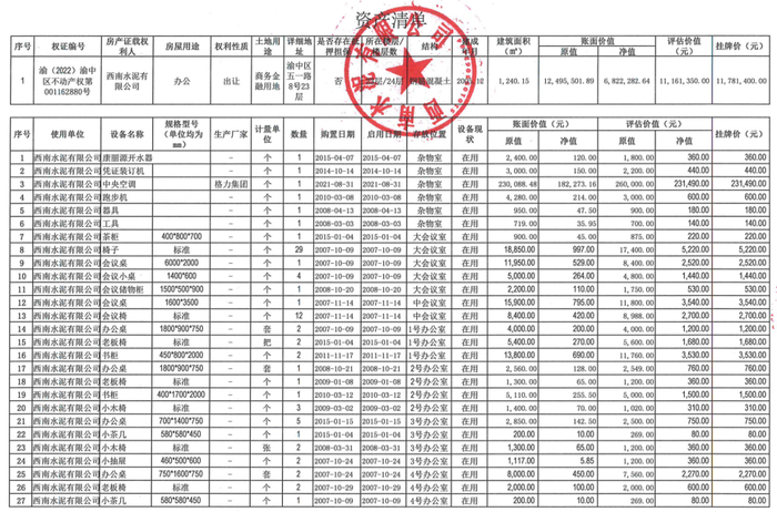 内蒙古金融资产管理有限公司公开处置内蒙古物西水泥有限责任公司不良资产包,债权本息合计10761441.61元,其中债权本金余额9900000元,利息余额861441.61元,