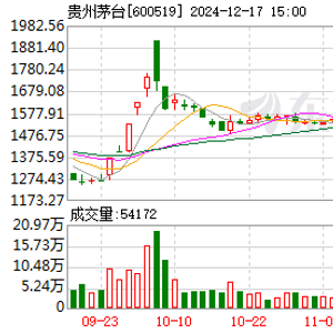 数据显示,截至12月17日收盘,贵州茅台股价报1558元/股,总市值为1.96万亿元。