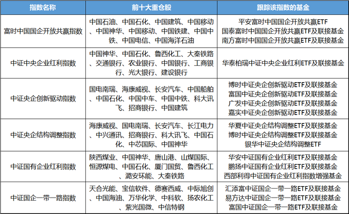 如果通过基金布局央企国企行情,可以看看下面这些指数相关的主题基金。