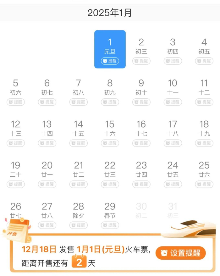 可买2025年1月1日车票了!