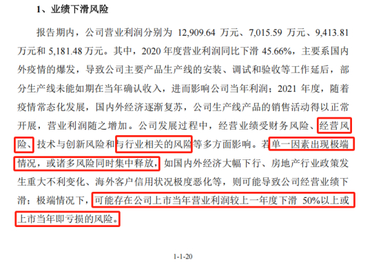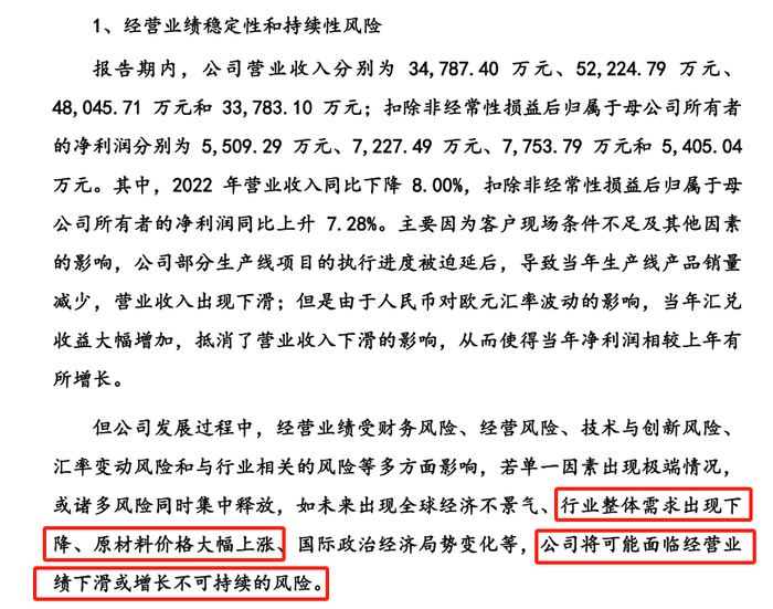 亚联机械对于经营风险的表述看起来前后变化较大,好像避免了免责式披露的情形,但始终提到行业需求变化引致公司业绩下滑的风险。考虑到公司面临市场空间的不确定性,该风险提示值得各界加强重视。