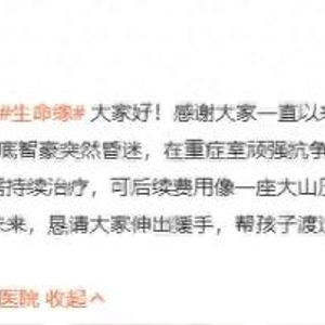 12月7日,蒋智豪父亲在其账号发声求助,称其9月底突然昏迷,在ICU顽强抗争一个月才转到普通病房,现在情况稳定,但仍需持续治疗,恳请大家伸出援手。
