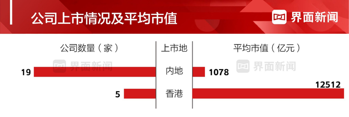 这25位CEO执掌的公司中,有19家在内地上市,5家在香港上市,而另外1家尚未上市(阿里巴巴、网易等多地上市的,按照A股、港股、海外股的次序选择)。从平均市值的角度来看,在A股上市的公司的平均市值为1078亿元,在港股上市的平均市值则为12512亿元。