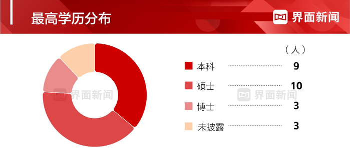 在25位上榜的CEO中有22位公开了自己的学历,硕士和博士分别有10位和3位,占比超过60%。