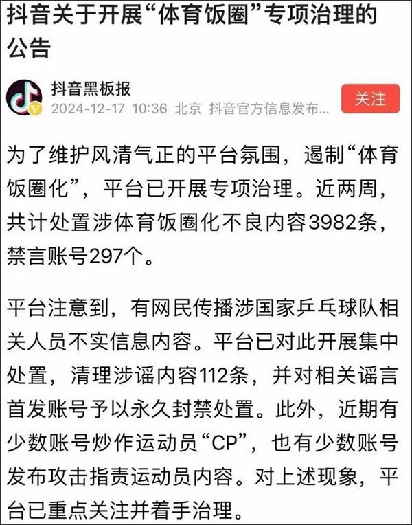 造谣国乒、拉踩引战……多平台点名通报、永久封禁
