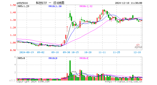 科技ETF(515000)涨0.62%,半日成交额4643.77万元