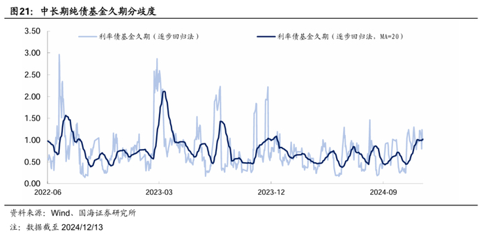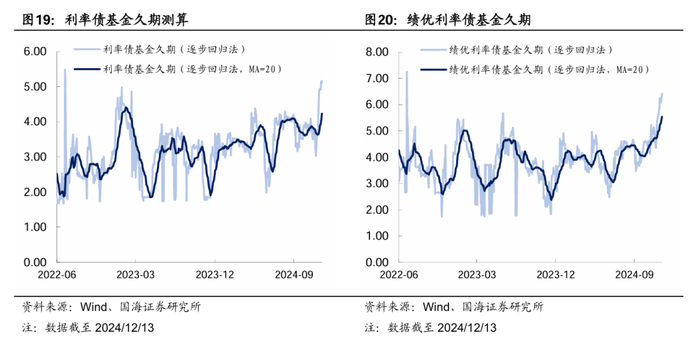 本周市场绩优利率债基金和一般利率债基金久期测算值分别为5.54和4.23,较上周分别增加0.31和0.35。