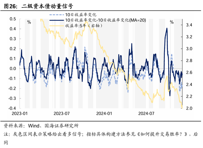 而展望2025年一季度,需关注降息预期落地及两会政策情况。降息预期落地后,交易盘可能出现系统性止盈,同时抢跑行情结束,配置盘的力量也相对减弱,届时可能导致收益率上行。此外,若两会的增量政策超预期,也将使债市出现调整。