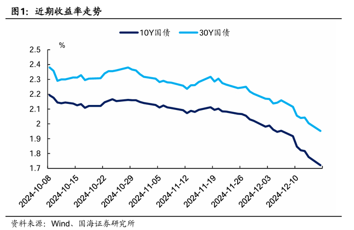 12月以来,利率债收益率出现快速下行,截至12月16日,10Y国债已下行至1.72%,30Y国债已下行至1.95%,较11月末分别下降30BP和25BP。那么,这背后是哪些机构在推动?债市本轮的下行空间还有多少?