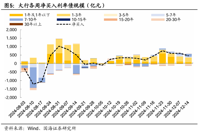 ③机构行为方面,配置盘的需求仍然较高。根据我们在《跨年行情如何演绎》中的分析,跨年行情多发生在12月中旬—来年1月中下旬。从本周机构的表现来看,农金社、保险在周三债市出现短暂调整时都明显加大了增配规模,若再次出现回调,其买入力量可能不弱,导致收益率上行幅度较小。