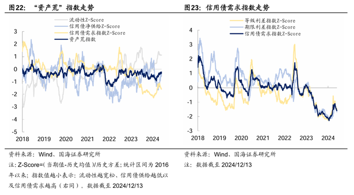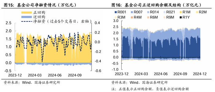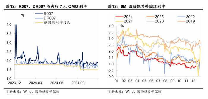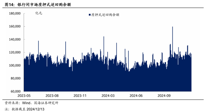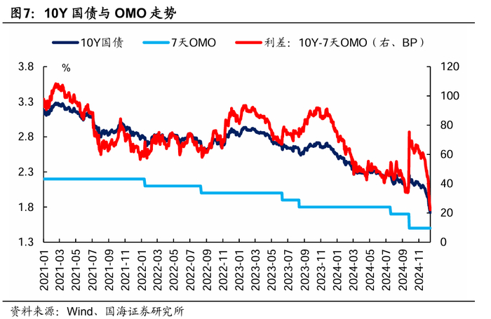 从点位来看,截至12月16日,10Y-OMO的利差已收窄至25BP以内,为2019年以来的最低值,已提前定价了2025年的降息预期,且交易盘参与积极性也所有下降,进一步下探的空间相对较小。