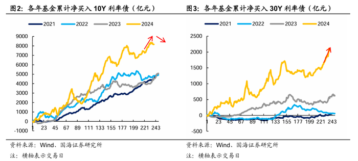 总结而言,近两周收益率快速下行的主力推手是谁?从以上分析可以看出,10Y的主力买入机构由基金转向银行,30Y的主力买入机构则是基金和保险。