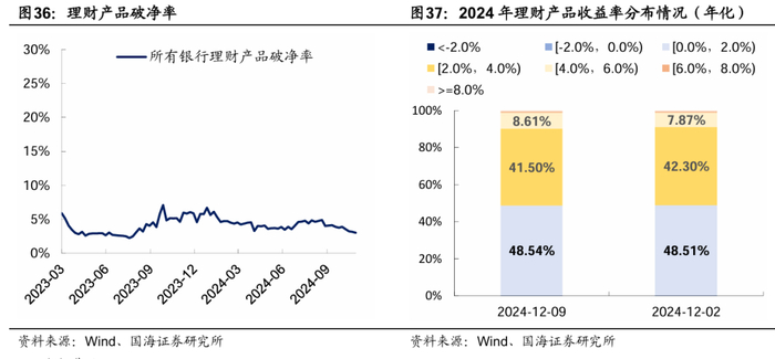 本周全市场理财产品破净率较上周有所下行,全部产品破净率为2.6%。