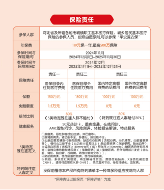 凡是河北省及所辖各地市城镇职工基本医疗保险、城乡居民基本医疗保险的参保人员且为在保状态的参保人,联系身边平安业务人员,即可参保。产品的投保时间截止到2024年12月31日,保障日期为2025年1月1日-2025年12月31日。