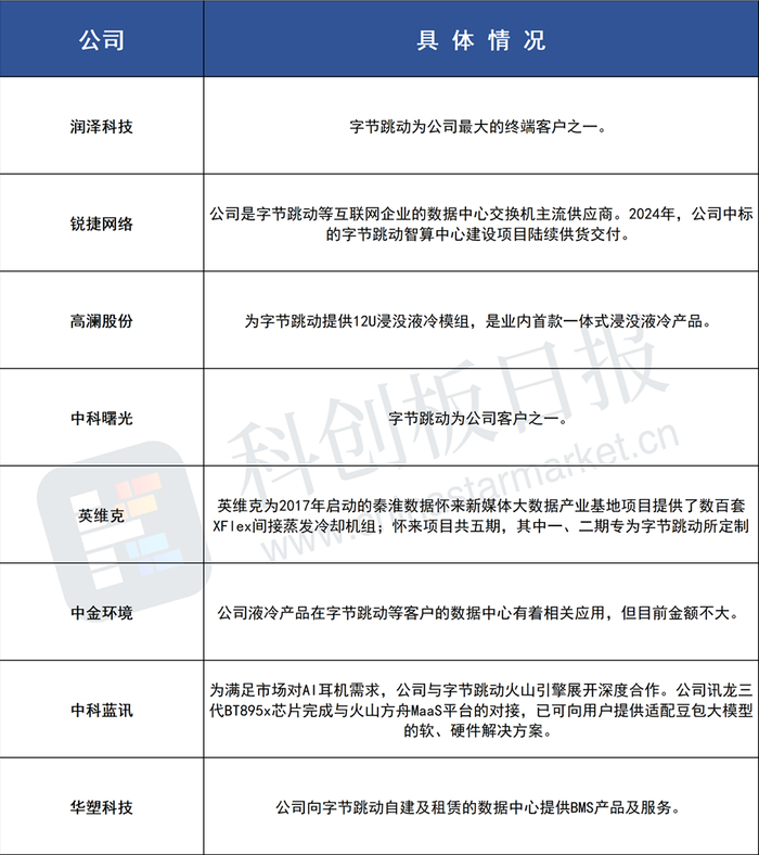 据不完全统计,A股中字节跳动算力硬件相关公司有: