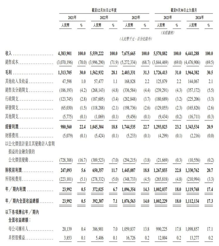 2021年、2022年和2023年前三季度,古茗收入43.84亿元、55.59亿元和55.71亿元,经调整利润为7.7亿元、7.88亿元和10.45亿元。