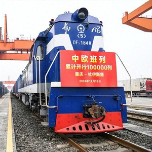 2024年11月15日,第10万列中欧班列——X8083次中欧班列(重庆—杜伊斯堡)在重庆团结村中心站准备发车。新华社记者 王全超 摄据介绍,国开行积极服务西、中、东三条主通道瓶颈路段升级改造和重点口岸站扩能,推动提升中欧班列通道运输保障能力;支持中欧班列集结中心示范工程建设,助推中欧班列境内货源集散与运输网络优化,提升枢纽城市区域覆盖与辐射水平。