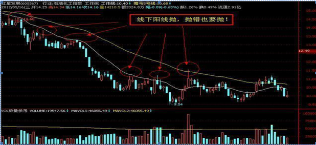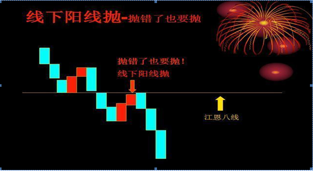 股票操作毕竟是概率性的,不可能百分之百。那么,如果发现买错了,怎么办呢?首先不能看见下跌就斩仓出局。线下阳线抛,说的就是股票操作发现错误,要等待股价向上反弹这个根均线的时候出局。这是一种逃生的手段。不过要求分析的时候使用未除权的数据。江恩八线虽是均线,但是在经过对市场大势分析及不断研究后提出的,具有很好的实战效果。