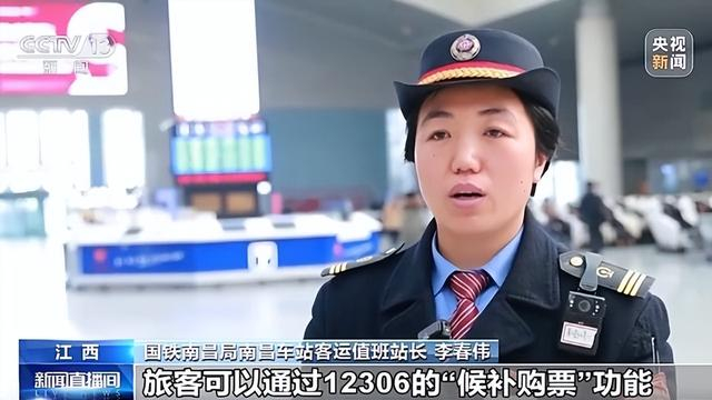 国铁南昌局南昌车站客运值班站长 李春伟:针对热门方向列车车票紧张的情况,旅客可以通过12306的“候补购票”功能,提交6个候补订单,每个订单中包含发到站相同(含同城不同车站)的预售期内任意3个乘车日期,累计最多可选择60个“日期+车次”的组合。