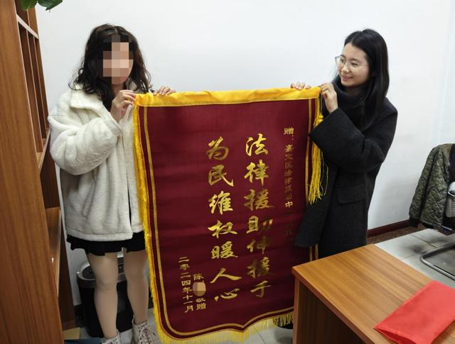 2024年12月,受援人陈女士特意送上一面印有“法律援助伸援手,为民维权暖人心”的锦旗,表达了其对嘉定区法律援助中心和援助律师的感激之情。