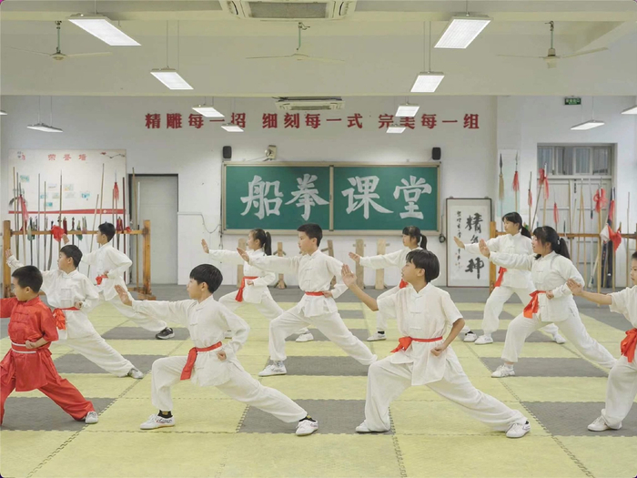 在他的倡导下,学校每周都会安排一节体育课专门教授船拳,并且在大课间时让学生进行套路练习。对于有兴趣和天赋的学生,学校还成立了船拳社团,让他们有更多机会深入学习和展示。