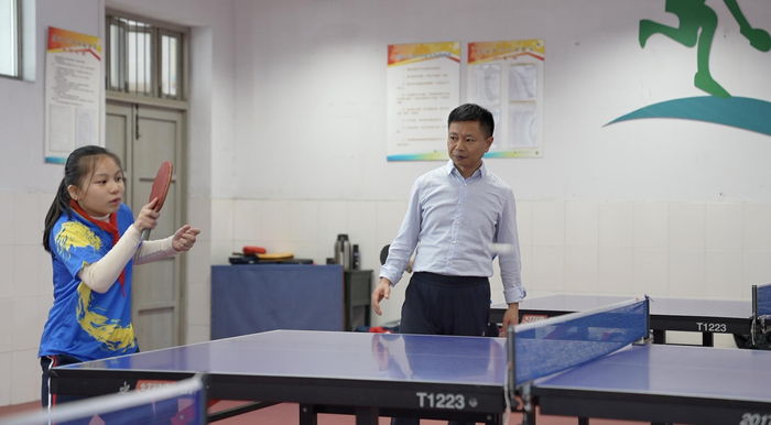 谈及学生们发起的乒乓球挑战,徐辉笑言:“现在他们天天训练,水平都很高,我打不过高年级的学生。”