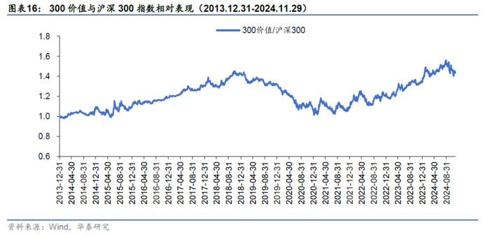 但与此同时,指数的年化跟踪误差接近10%,超额最大回撤达到31.19%,显示价值策略与基准相比仍有较明显的独立性和风格性特点;从相对净值走势也可以看出,价值策略的相对表现存在较明显的趋势性波动,存在长周期风格的特征。