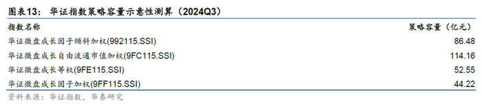 因子倾斜加权方式可以在可投资性和风格纯粹程度之间可以得到较好的平衡。相比于市值加权方式,因子倾斜加权增强了风格特征;为了便于比较不同策略的可投资性,我们构建策略容量=min(个股自由流通市值×5%÷权重)作为标准,以华证指数为例,展示在不同加权方式下的策略容量情况,可以看出,因子倾斜加权的方式相比于等权与因子加权较好地提升了策略容量。