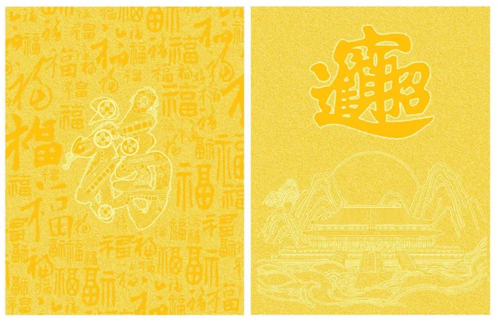 在册子折页上的“福”字中,隐藏着五帝钱、故宫三大殿以及角楼。