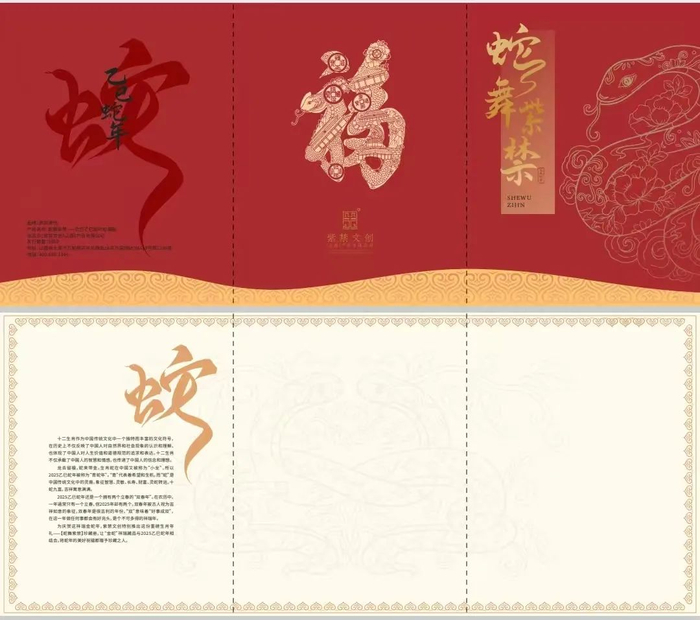 2025年是祥瑞年,也是故宫博物院建馆100周年,在这个特殊的日子里,紫禁文创特别推出《蛇舞紫禁》珍藏册,内含原创设计文创产品,希望新的一年里能给大家带来祥瑞和安康。