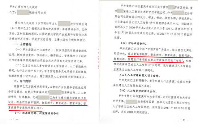 本报记者12月17日还获得了上述AI智能公司与重庆市政府、渝北区、南岸区、永川区等多个区县的协议文本。