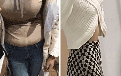 穿前小肚腩明显凸起,牛仔裤系不上扣子。穿上后,小腹一秒平坦,而且裤腰还宽松的距离!