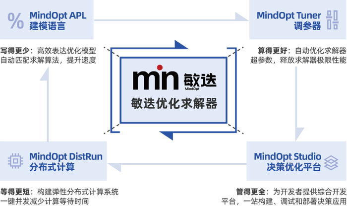 一款自研求解器,从零开始突破重重难关,打榜登顶掀翻外国巨头,这似乎已经是一个圆满的故事。可对于“敏迭”来说,这只是踏出了第一步,相当于是一款游戏打通了练习关,或者说是一款新车在试车道跑出亮眼的成绩。