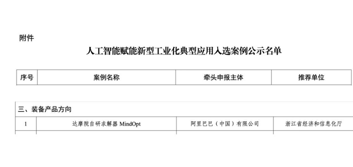 12月12日,工业和信息化部公示人工智能赋能新型工业化典型应用案例,达摩院自研求解器“敏迭”入选“装备产品方向”,“八观”气象大模型则入选了“技术底座方向”。