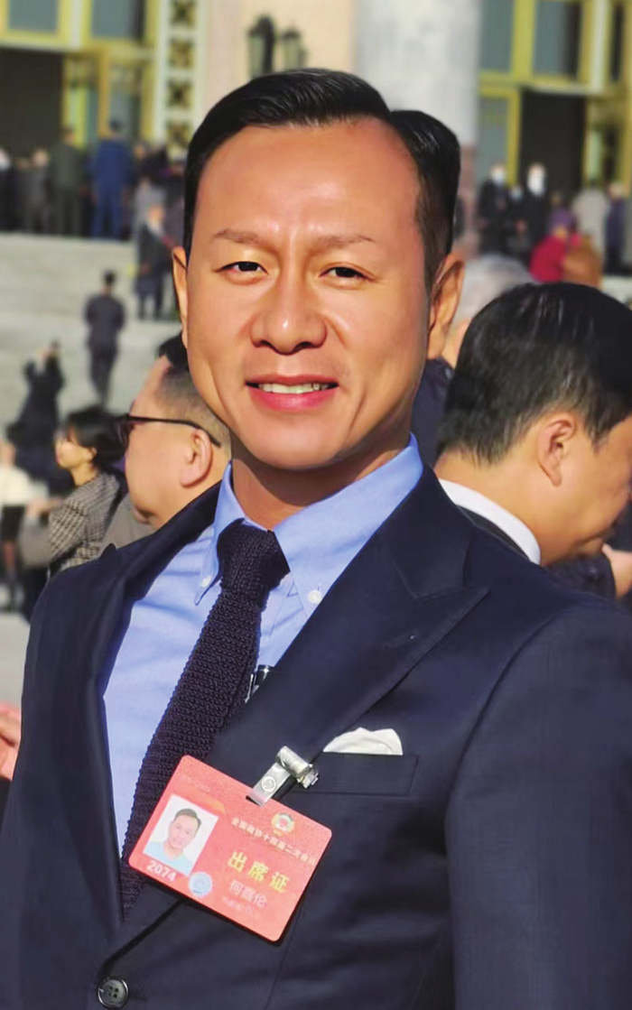 2023年1月,何嘉伦担任第十四届全国政协委员。这让多年往来于澳门与内地之间的他,有机会站在国家发展战略的高度看祖国、看澳门,思考未来的发展方向,也有机会发挥自身优势,探索发展新机遇,积极融入国家发展大局,助力澳门经济适度多元发展。他将第一份全国政协委员提案落笔于《关于发挥澳门优势,推进“双港”联动,探索中葡深化务实合作的提案》,思考作为中国与葡语国家“超级联络人”的平台,澳门如何通过强化与连云港港、南沙港的合作,更好地整合资源,在物流、仓储、港口管理等方面进一步对接,以提升中国与葡语国家间的贸易效率与成果。他谈到,在推动资源优化,强化我国与葡语国家务实合作,粤港澳大湾区与长三角在先进制造及服务类别各具优势,“大湾区”强调服务与创新,而“长三角”工业向智慧化转型,伴随国家经济开放,区域互联互通需尝试新的经济伙伴关系。江苏连云港加上粤港澳大湾区的南沙港,以港口经济加速带动枢纽经济,发挥中国与葡语国家商贸合作,结合区域合作、港口合作优势。“可以说,连云港港和南沙港的‘双港联动’模式,可以为探索深化中国与葡语国家间的合作注入新的动力。”