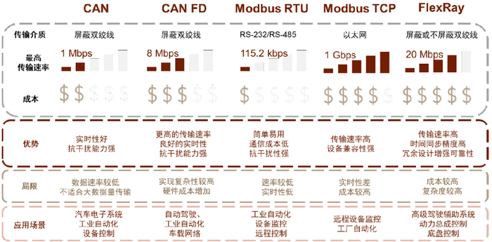 短期高中低速通信协议并存,长期看好以太网演进为内部通信统一标准