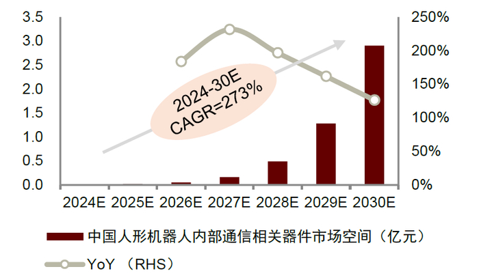 空间测算:伴随中国人形机器人需求提升,对内对外通信的市场规模有望实现高速增长