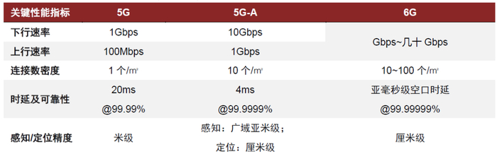 资料来源:IMT-2020(5G)推进组《5G愿景与需求白皮书(2014年)》,IMT-2020(5G)推进组《5G-Advanced场景需求与关键技术白皮书(2022年)》,IMT-2030(6G)推进组《6G典型场景和关键能力白皮书(2022年)》,MWC23,新浪科技,中金公司研究部