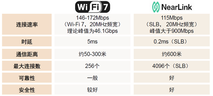 星闪SLB模式与Wi-Fi的应用领域有所重合,均专注于在高传输速率、低延时、传输信息量大的场景下为用户提供实时、低功耗与高安全性的信息通信。星闪的SLB模式融合大量5G技术,包括支持类似5G的异步HARQ(Hybrid Automatic Repeat reQuest,混合自动重传请求)技术、类似5G的频域调度设计和帧结构等,大幅提高星闪SLB模式的通信性能。此外,得益于独特的空口技术设计,星闪在保持与Wi-Fi 7近似传输速度的同时实现了微秒级时延,并通过支持Polar数据信道编码,大幅提高抗干扰能力,此外,星闪最大连接数达4096个,是Wi-Fi 7的16倍,能够较好地满足万物互联场景下对于设备接入数量的高要求。