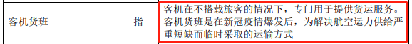 并且“客机货班”登上舞台,公告显示,客机货班是指客机在不搭载旅客的情况下,专门用于提供货运服务。客机货班是在新冠疫情爆发后,为解决航空运力供给严重短缺而临时采取的运输方式。