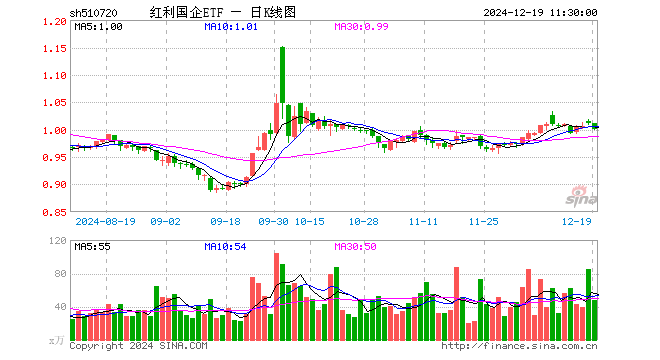 红利国企ETF(510720)业绩比较基准为上证国有企业红利指数收益率,管理人为国泰基金管理有限公司,基金经理为麻绎文,成立(2024-04-30)以来回报为4.27%,近一个月回报为2.81%。