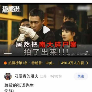 由张译主演的刑侦悬疑剧《他是谁》是在今年3月上映的“老剧”了,没想到临近年末却再次站上了舆论的风口浪尖,主演张译被一封网友的公开信隔空喊话,虽然对象是演员,但公开信的矛头直指剧方:在《他是谁》剧情中的“余爱芹案”明显改编自“刁爱青案”,也就是知名度极高、曾和白银案并称的“南大碎尸案”。如今白银案已经昭雪,而残忍程度和破案难度有过之而无不及的南大碎尸案却久久无法破案,每年都会被媒体翻出,也牵动着警方和民间的心。