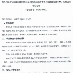 内蒙古自治区包头市公交运输集团有限责任公司纯电动城市客车(公路版公交车辆)采购项目