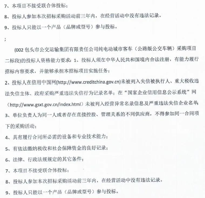 2.3投标人须为纯电动公交车制造商。