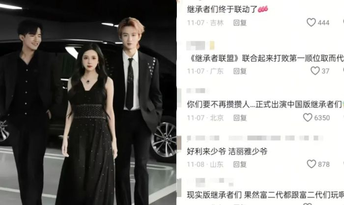 视频中,三人身着黑色礼服,依次从豪车上走下,伴随着氛围感十足的背景音乐,不到二十秒的视频收获了数十万点赞,评论区一片“《继承者们》中国版”“这是真豪门”。
